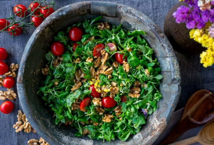 I centrum står grøntsager, bælgfrugter, fuldkorn, fisk og sunde fedtstoffer. Kød spiller ofte en birolle, mens linser, bønner, kikærter og grøntsager fylder mest på tallerkenen. Det giver måltider, der både mætter og er lette for kroppen. Tænk fx på en simpel tomatsalat med olivenolie og basilikum, en gryderet med kikærter og grøntsager eller fisk med citron, hvidløg og krydderurter. Retterne er ikke komplicerede, men smagen er dyb, fordi råvarerne får lov til at være hovedpersoner.